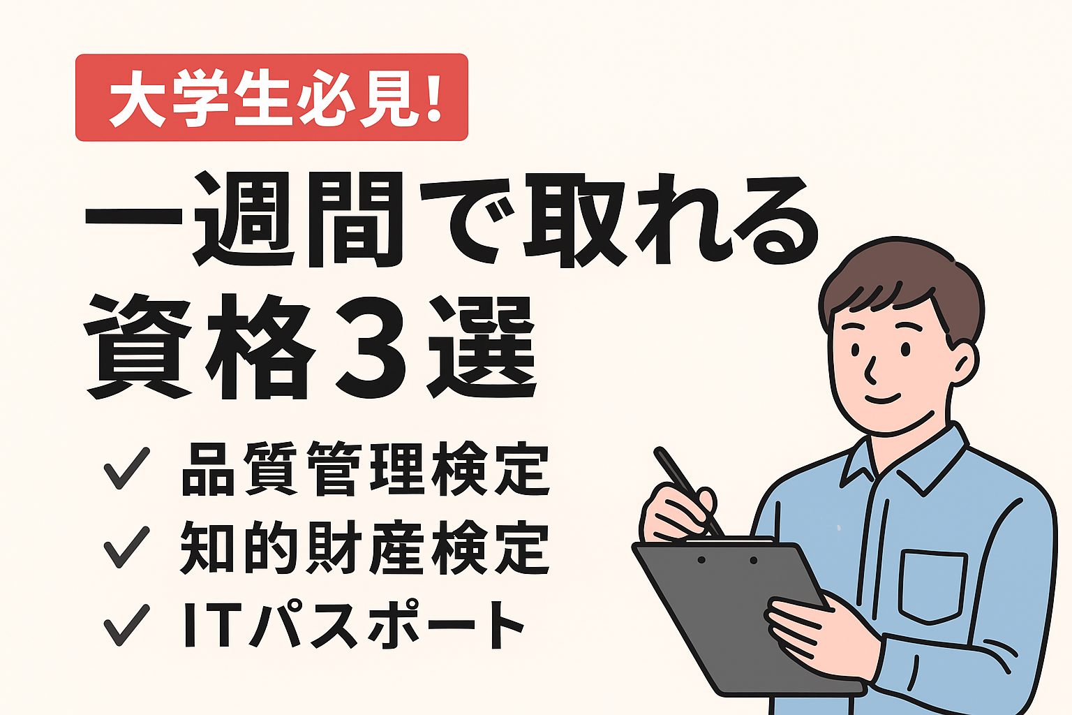 👉 夏休み最後の1週間で、QC検定・知財検定・ITパスポートのいずれかに挑戦すれば、